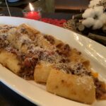 【薫製の3種盛り合わせ】 【舞茸ドレッシングのサラダ】 【鶏もも肉の香草ロースト】 【粗びき肉の赤ワインラグーソースのパッケリ】 【洋梨のソルベ】
